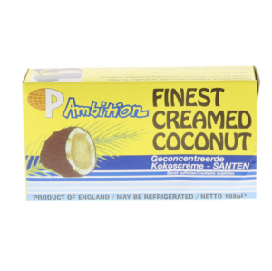Ambition Creamed Coconut (198 g) is een geconcentreerd kokosblok voor rijke curry’s, desserts en smoothies. Rasp of smelt voor een romige body en intense **kokossmaak** zonder extra vloeistof – perfect voor Thaise, Caribische en Indiase gerechten. Het is ook heerlijk in glazuur en energierepen. Dit blok is houdbaar en zuinig, en een ruimtebesparend alternatief voor kokosroom uit blik.