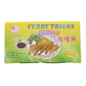 Ambition Curry Trigon Samosa zijn knapperige driehoekige gebakjes gevuld met gekruide aardappel/erwten. Een makkelijke snack voor bij de thee of een feestelijk voorgerecht. Frituur of airfry tot ze goudbruin zijn en serveer met chutneys. Een diepvriesvriendelijke **currysamosa** die streetfood naar je thuismenu brengt.
