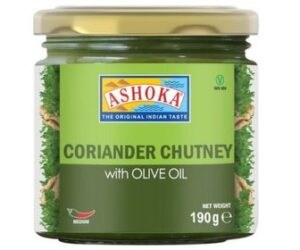 Ashoka Coriander Chutney is een frisse, pittige groene saus gemaakt van korianderblad (dhania) en een selectie van authentieke kruiden, zoals peper en citroen, om uw snacks en maaltijden te verrijken met traditionele smaak. In deze handige 190g pot proeft u de essentie van een huisgemaakte groene chutney: aromatisch, licht scherp en boordevol gezonde ingrediënten. De chutney heeft een heldere groenkleurige uitstraling en een onweerstaanbaar kruidenaroma dat meteen doet denken aan de Indiase keuken. Perfect als dip voor samosa’s en pakora’s, als smeersel op broodjes of als smaakmaker in wraps en sandwiches. Met Ashoka’s korianderchutney haalt u binnen enkele seconden de authentieke smaak van versgemalen koriander en specerijen in huis, zonder zelf met vijzel en blender aan de slag te hoeven.