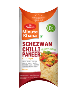 Productbeschrijving: Proef de spannende fusie van Indiaas en Chinees streetfood met de Haldiram Schezwan Chilli Paneer Wrap. Deze hartige wrap (156 g) is gevuld met zachte paneer (Indiase cottage cheese) en knapperige groenten, gesmoord in een pittige Schezwan-chilisaus. Het resultaat is een wrap met authentieke smaak én een flinke kick – perfect voor liefhebbers van pittig eten. De omhulling is een volkoren paratha die zorgt voor een vullende bite vol gezonde ingrediënten. Even opwarmen en u bijt in een smaakexplosie: malse paneer, frisse groente en een aromatische, knoflook-chili saus met een hint van Sichuan peper. Deze Indiase snack in wrap-vorm biedt restaurantkwaliteit comfortfood in een handomdraai.