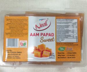 Klassieke aam papad van rijpe mango’s: zacht, fruitig en volzoet. Populair bij jong en oud als traktatie, reissnack of zoete afsluiter bij thee. Flexibele vellen, makkelijk te portioneren en ideaal om te delen. Bestel online of haal op in Haarlem—Mittal Supermarkt heeft altijd een mango‑moment in huis. (Algemene info over aam papad als Indiase fruit‑leather.) Wikipedia