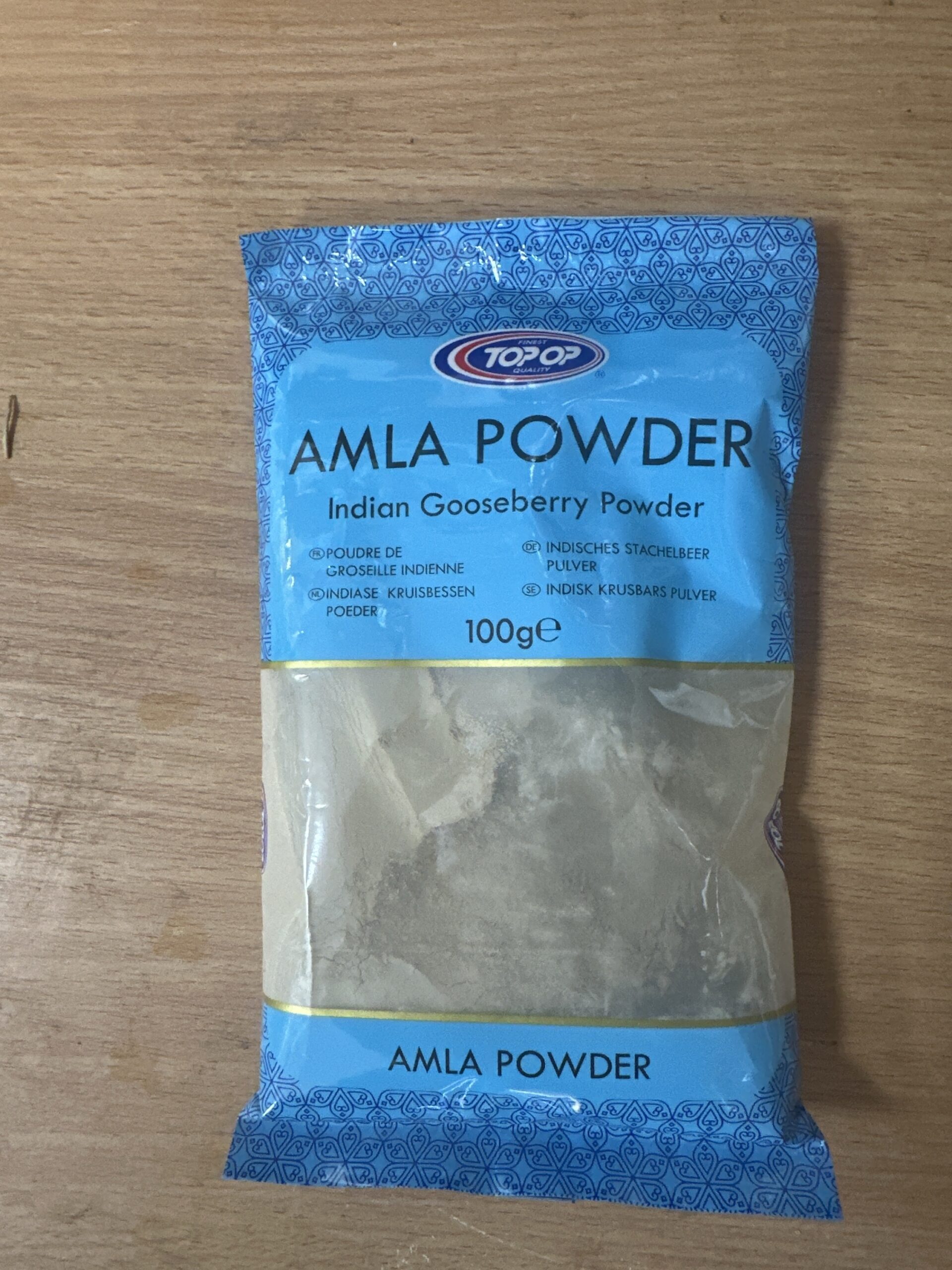 Fijn amlapoeder (Indiase kruisbes) voor infusies, smoothies en haar‑/huidmaskers. Geeft een zacht frisse, fruitig‑aardse toon en is geliefd in traditionele verzorging. De 100 g verpakking is ideaal om kennis te maken. Te koop bij Mittal Supermarkt of via online bestellen.