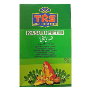 TRS Kasuri Methi 100g (gedroogde fenegriekbladeren) geeft een karakteristiek aroma en milde bitterheid aan Indiase gerechten. Perfect voor curry’s, boterkip en naan-deeg. Deze premium bladeren brengen authentieke smaak en geur aan je keuken. Verkrijgbaar bij Mittal Supermarkt Nederland.